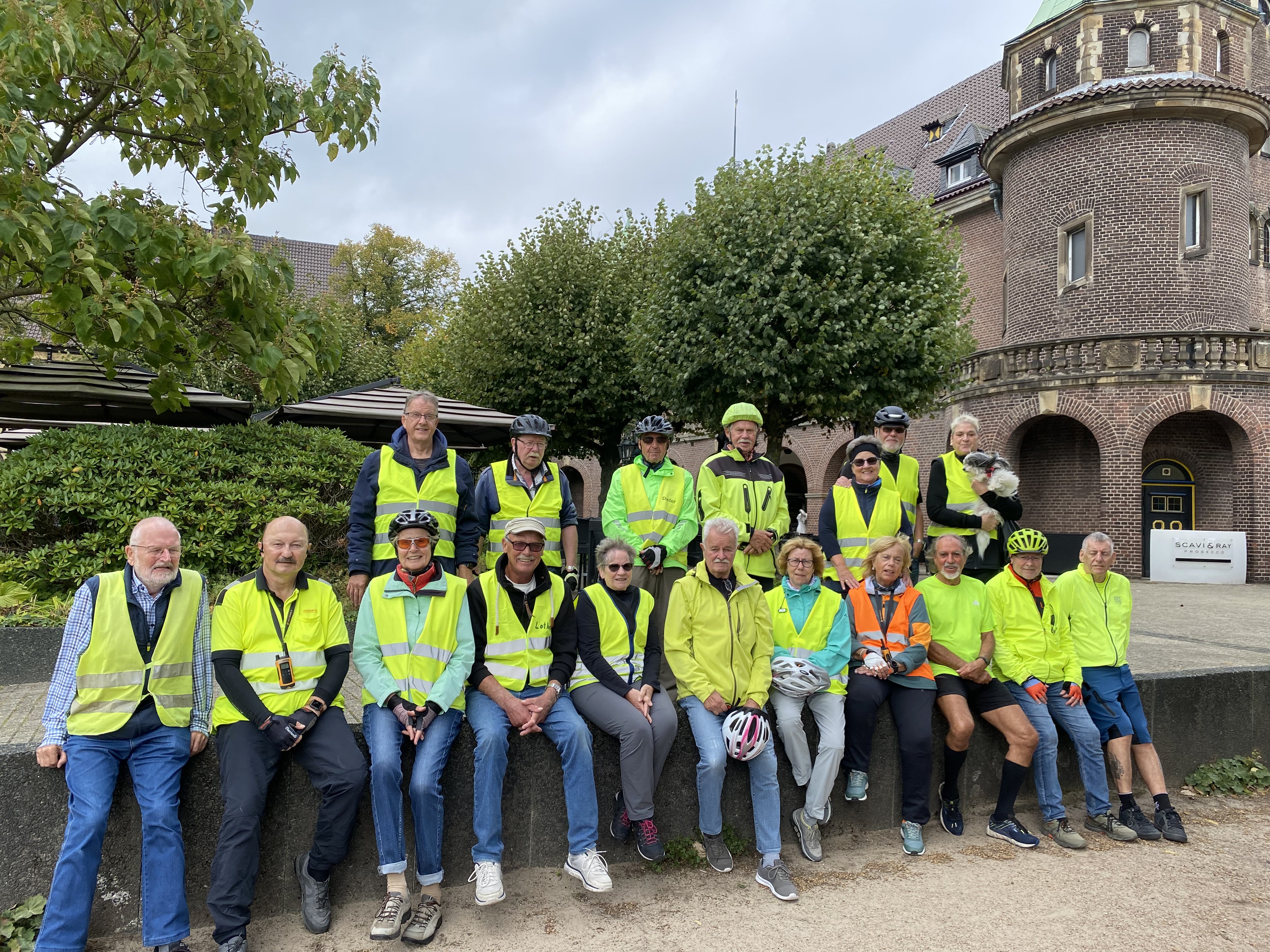 Am Morgen war das Wetter noch verhangen und trüb, es hätte besser sein sollen. Immerhin war es nicht zu kühl. Kurz vor Zehn trafen dann auch die Mitstreiter der heutigen Tour ein, so dass wir pünktlich um 10:01 Uhr mit 11 Personen in Richtung Dinslaken aufbrachen.