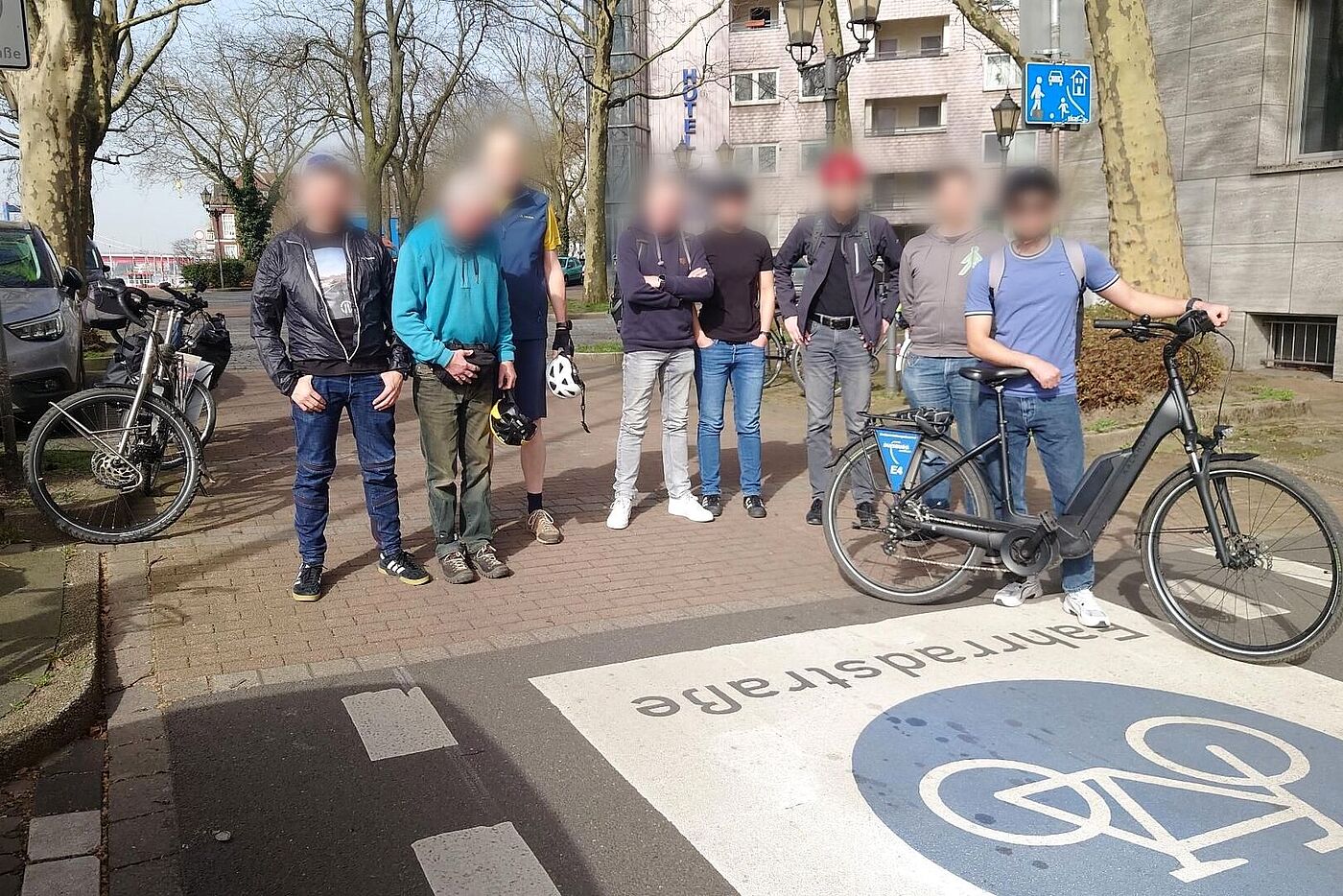 Anfang März hatten wir einen Termin mit Vertreterinnen und Vertretern der Stadt Duisburg, an dem wir zusammen Routen, die sich beide Seiten vorstellen könnten, mit dem Rad abgefahren sind.
