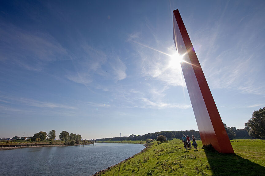 Bisher war die 25 Meter hohe Skulptur ‚Rheinorange‘ am Rhein der offizielle Zielpunkt des beliebten und überregional bekannten RuhrtalRadwegs. Genau an dieser Stelle mündet nach 240 Kilometern Radfernweg die Ruhr in den Rhein.
