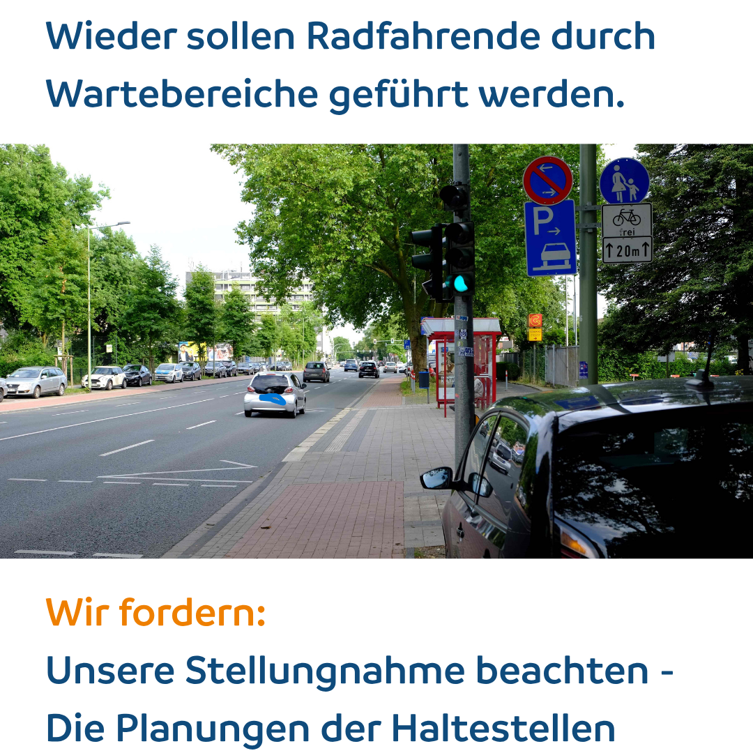 Problematisch ist die geplante Umsetzung: An mehreren Haltestellen soll der Radverkehr erneut durch Wartebereiche geführt werden.