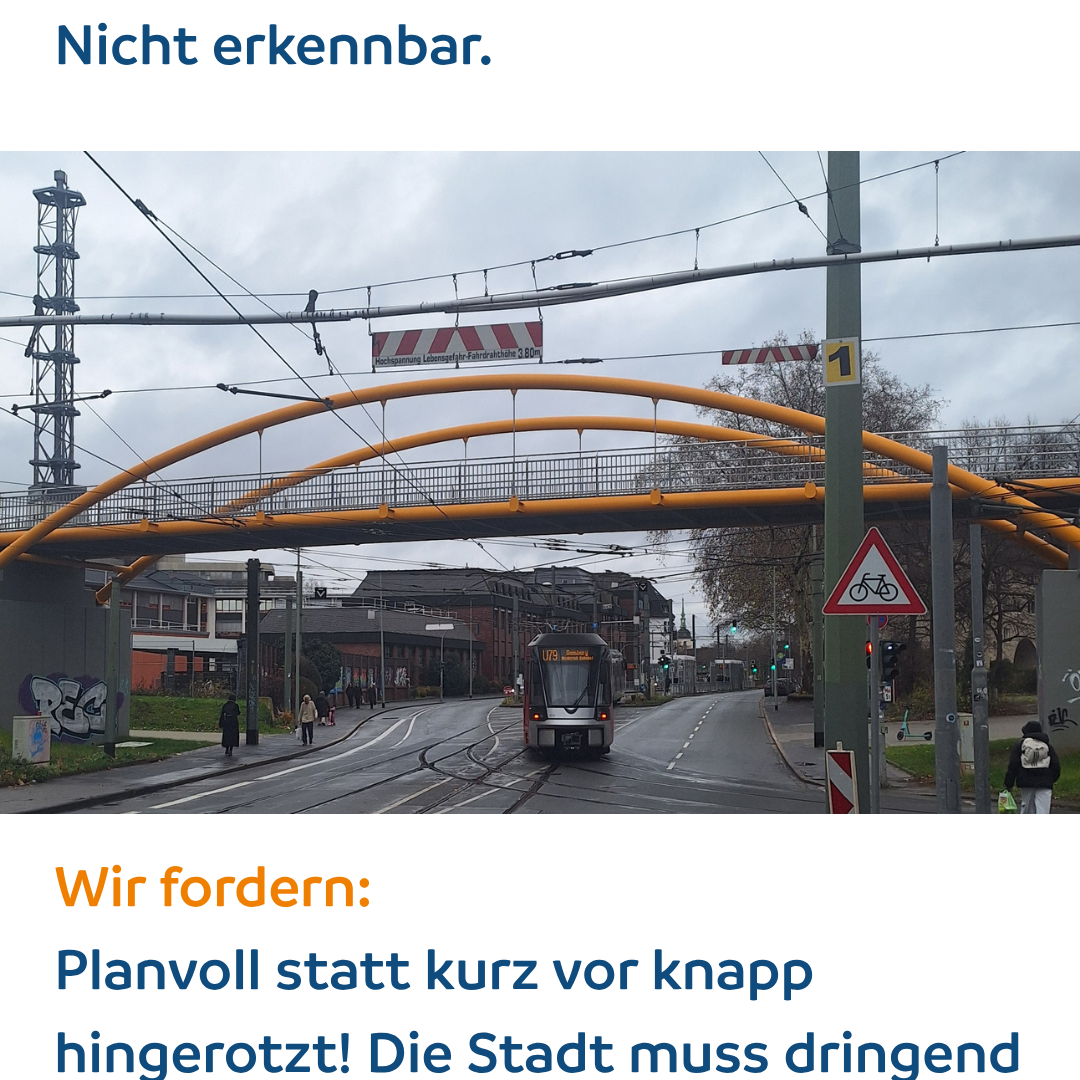 Ein frühzeitiges Verkehrskonzept für die IGA 2027 hätte die Chance geboten, die Verkehrsführung zwischen Innenstadt und Rheinpark - auch für die Zukunft, auch für den Radverkehr - neu zu ordnen. Großveranstaltungen ohne belastbares Verkehrskonzept erzeugen hingegen einfach nur Verkehrsrisiken. Wir meinen: Schade, mal wieder eine Chance vertan.